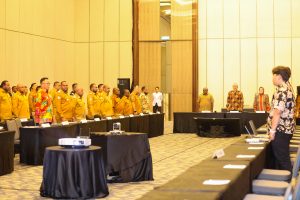 Hadir pula para kepala OPD di lingkungan Pemprov Papua Tengah, para deputi/asisten deputi, para direktur, para kepala kantor, kepala balai dan seluruh pejabat eselon II dan III, baik yang hadir secara luring maupun daring, direktur jenderal dari kementerian atau lembaga, serta undangan lainnya. (*)