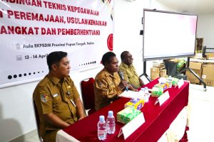 NABIRE — Pemerintah Provinsi (Pemprov) Papua Tengah melalui Badan Kepegawaian Pengembangan Sumber Daya Manusia (BKPSDM) Provinsi Papua Tengah menggelar “Bimbingan Teknis Kepegawaian Tentang Peremajaan Data serta Usulan Kenaikan Pangkat dan Pemberhentian ASN tingkat Provinsi Papua Tengah”, Senin, 13 April 2026.